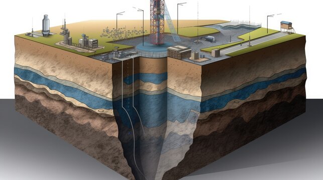 Comprehensive Petroleum Engineering Diagram, Drilling Process Explained, Technical Schematic, Oil Industry Blueprint, Advanced Techniques, Generative AI Illustration