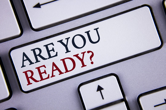 Word writing text Are You Ready Question. Business concept for Prepare well to face upcoming business changes written on White Keyboard Key with copy space. Top view.