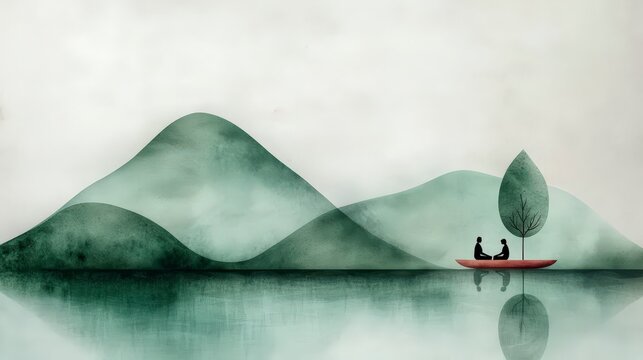 Serene lotus flower floats on calm water, sky background, peaceful scene, meditation imagery