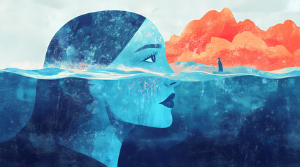 Abstract artwork on mental health and how to deal with the mind wellness with a natural approach. Generative AI.