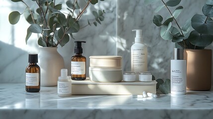 Stylish cosmetic bottle on a marble surface, blending elegance with modern design. Perfect for beauty, skincare, and branding projects.