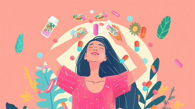 Colorful get well soon card with capsule and tablet design