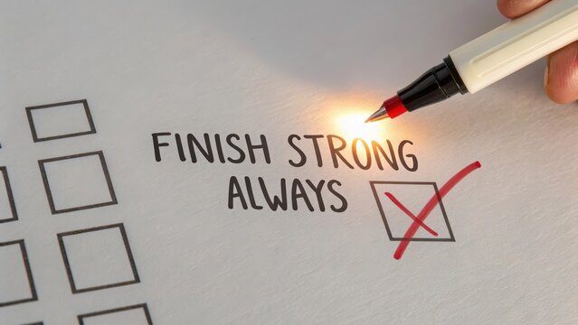 Finish Strong Always: Motivational Checklist with Red Marker Marking