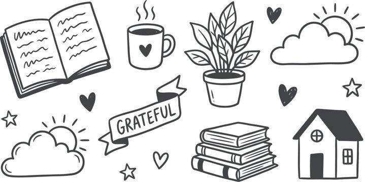Journaling doodles and gratitude elements set vector design