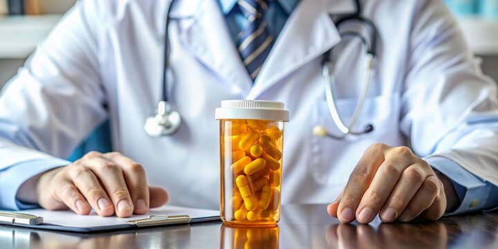 A close-up shot of a person holding a prescription medication bottle with pills spilling out, surrounded by medical