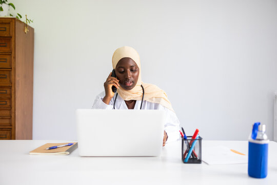 Navigating Telehealth A doctor uses a virtual checklist for patient care via laptop in modern clinic with digital