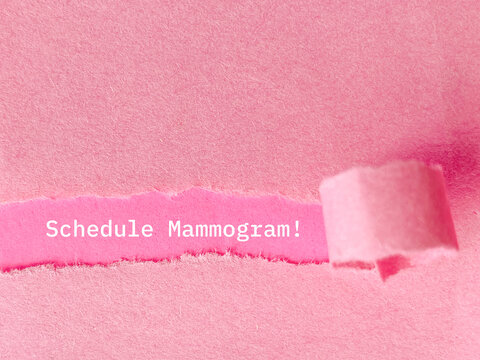 Text of schedule mammogram behind torn paper background. stock photo