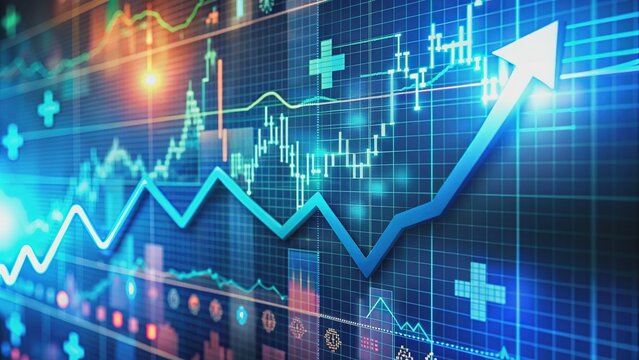 Healthcare sector supplies stock price chart background, Generative AI