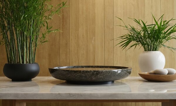 Botanical serenity tabletop arrangement with bamboo plants and spa stones