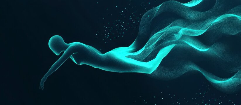 Silhouette of a Woman in Tranquil Waters at Sunset, Embracing Serenity and Mindfulness