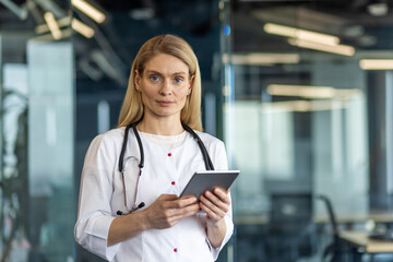 A healthcare professional consulting with an elderly patient in a digital home care setting emphasizing health technology integration