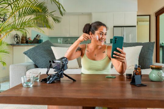 Content creator films skincare tutorial at home