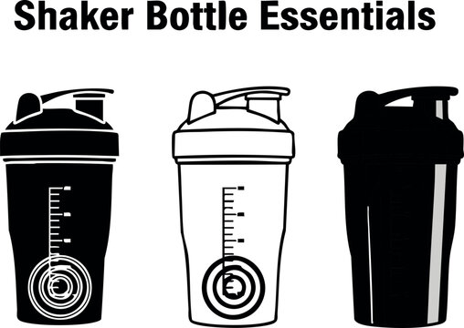 Shaker bottle essentials collection with different styles and measurements for fitness and hydration needs