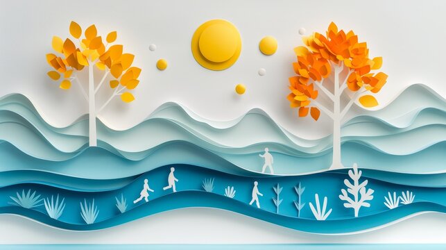 Premium paper podium against a pastel backdrop featuring plant branches leaves pebbles and natural stones Mock up for exhibitions product presentations wellness and relaxation 3D render
