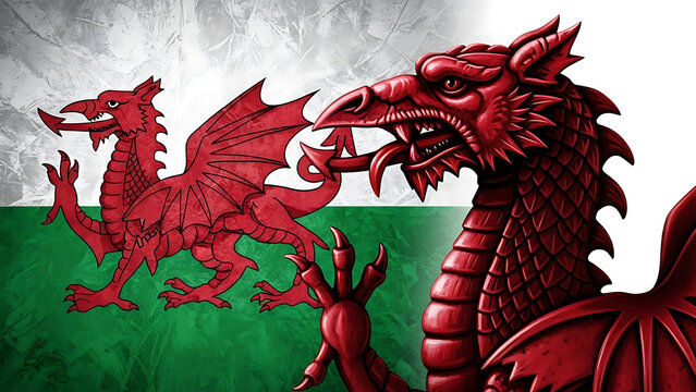 The Red Dragon: The Flag of Wales as a Symbol of Welsh Identity - Imagine the flag of Wales with its red dragon on a green and white background, symbolizing Welsh identity and pride
