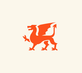 Red dragon graphic sign. Wales national symbol. Icon isolated on white background. Vector illustration