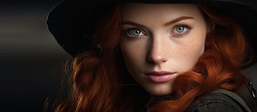 Fiery Redhead Cowgirl in Stylish Black Hat Making Funny Faces for Camera