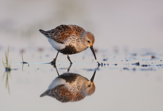Black-winged Stilt searching for food in the pond. (Himantopus himantopus)..