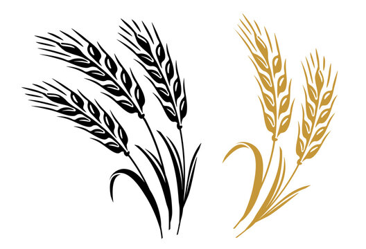 Ears of wheat symbol. Farm agriculture, bread, healthy eating emblem. Hand drawn vector illustration