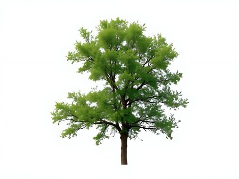 an image of a tree with green leaves on a white background, there is a tree that is standing in the middle of a field