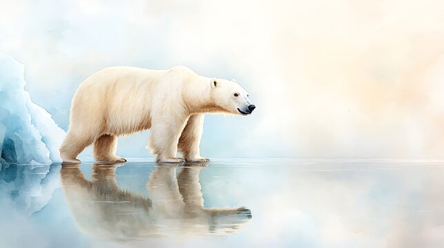 Arctic serenity watercolor art of a polar bear encounter in a calm nature landscape