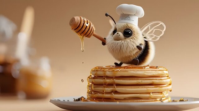 Cute Bee Illustrating Honeycomb Pattern on Light Background