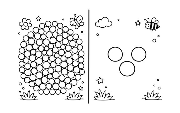 Simple line art illustration of a honeycomb pattern with a bee and butterfly for kids