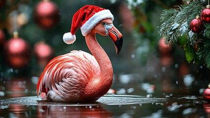 christmas on the beach Surreal coral scene featuring a flamingo and a festive tree.