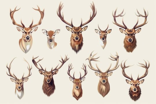 creative watercolor illustration of a young deer with antlers in the forest on a white background. Generative AI