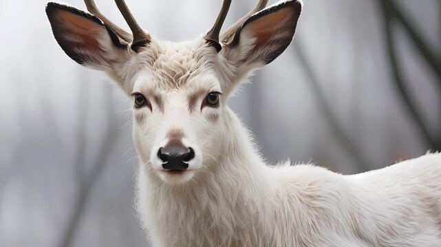 majestic white deer in misty forest, surrounded by mystical atmosphere, created with generative ai
