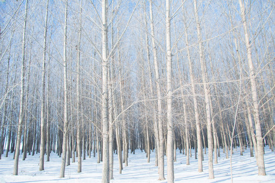 Photograph of a grove of white Poplar trees in a the winter snow