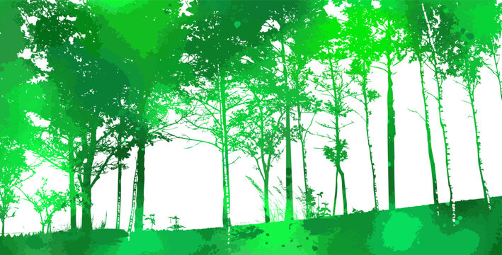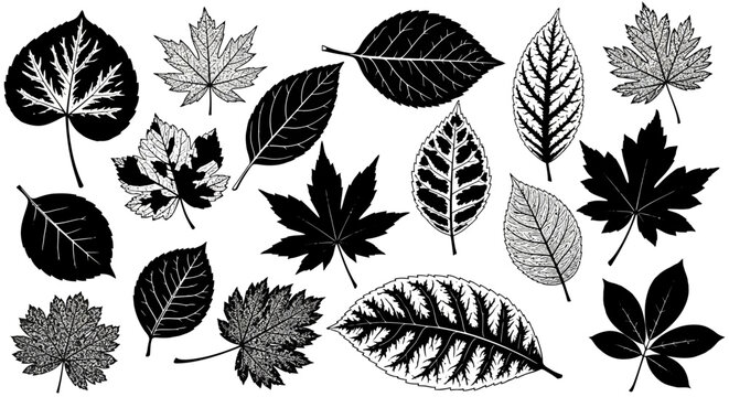 Set of Populus tomentosa and Populus nigra black poplar trees isolated cutout vector illustration, natural forestry, deciduous plants, garden landscaping, tree silhouette.