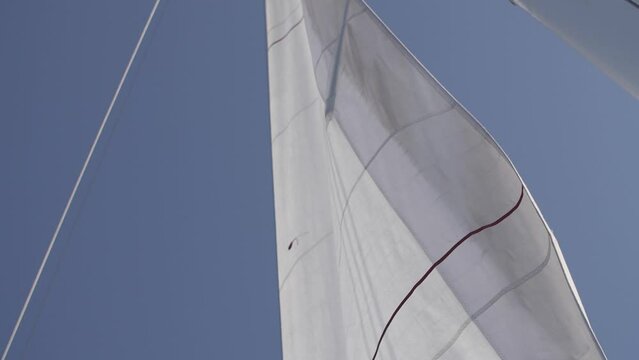 Doodle of a person adjusting the sail on a sailboat, simple illustration, cute design, centered composition, pastel colors, white background