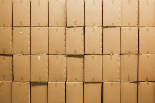 Warehouse Shelves Full of Cardboard Boxes for Shipping and Storage Organization and Logistics Efficiency