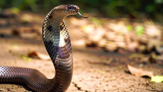 Cobra hissing action tropical forest wildlife photography natural habitat close-up view serpent behavior