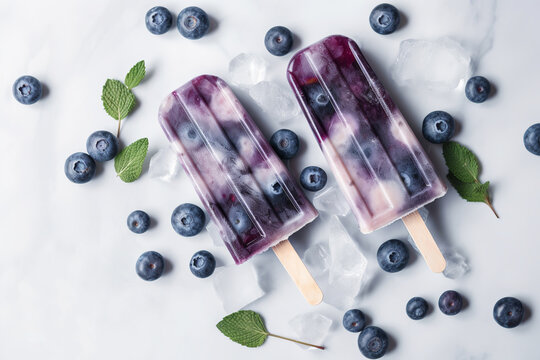 Healthy ice popsicles with fresh blueberry fruits with ice.