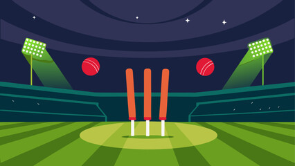 Dynamic cricket ball hitting wickets in stadium lights action for sports marketing visuals