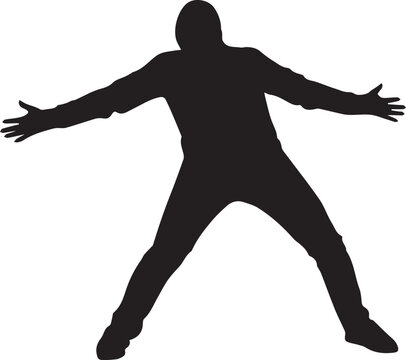 Silhouette of a martial artist in a wide stance, performing a karate pose.