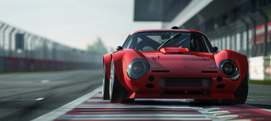 Eye-Catching Red Sports Car on Racetrack with Low, Wide Stance Perfect for Automotive Enthusiasts