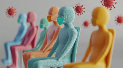 3D Cartoon of People Maintaining Social Distance in Colorful Community Setting, Promoting Virus Protection and Safe Practices