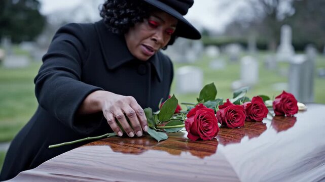 Independence Day Emotional and Respectful Moment of a Widow holding an American Flag.