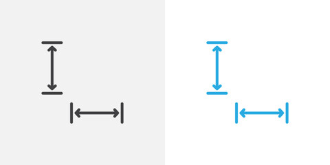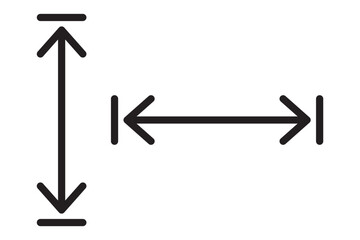 Outline ruler icon, with editable stroke. Measuring ruler with dimension arrow, length or width measure. Shoes or clothes size, measure scale, body parameter size, overall dimension. Vector icon