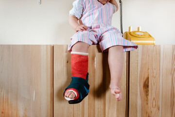 Close up of a toddler with a cast