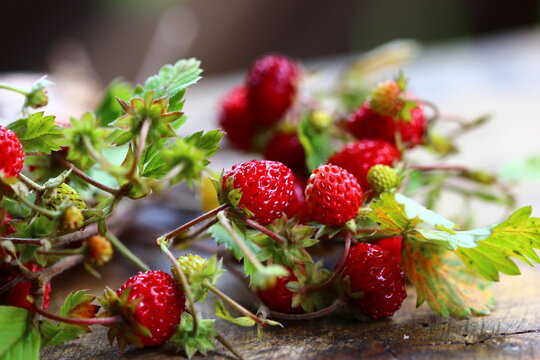 Set of wild strawberry flowers and berries, watercolor illustration.