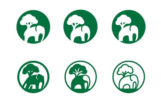 Eco-Tourism Logo Variations. Eco-tourism with wildlife preservation. Icon set. Set Logo of eco-tourism with wildlife preservation: elephant and tree combined