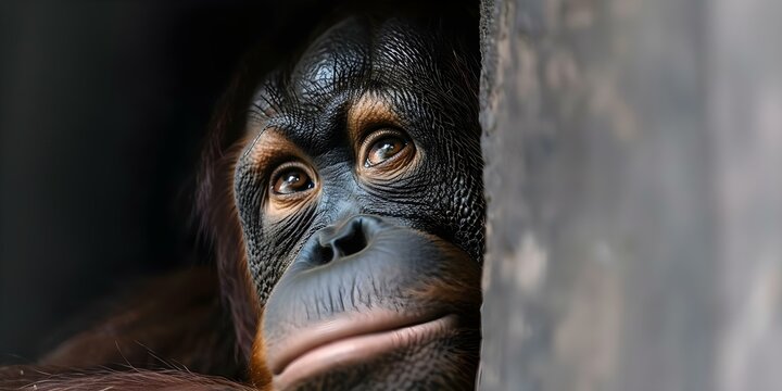 Orangutan Habitat Loss from Deforestation. Concept Rainforest Destruction, Biodiversity Loss, Conservation Efforts