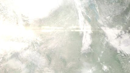 Zoom in from space and focus on Williston, North Dakota, USA. 3D Animation. Background for travel intro. Elements of this image furnished by NASA