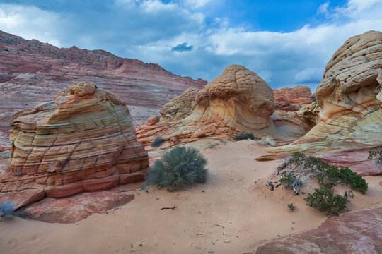 Saudi Arabia, Jazan Province, Mushroom Rocks formation. Generative Ai