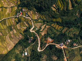 Drone aerial view - windy road in summer
