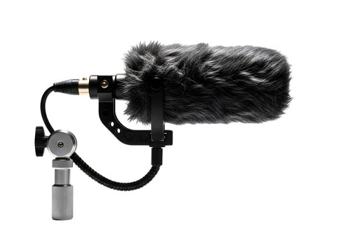 Professional shotgun microphone with windjammer isolated on transparent background
